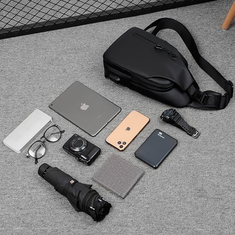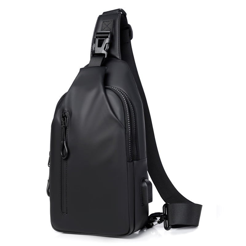 - An charging port on the side pocket enables you to charge your gadgets. Meanwhile the breathable shaped padded shoulder strap and back panel is extremely comfortable and lightweight, which will release heat rather than accumulate.